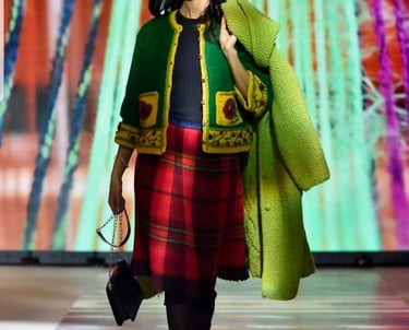 My designs range in difficulty and style as i like exploring different techniques and fabrics. Picture above ( left ) is the jacket i have created for the first lady of Serbia and is inspired by our floral Serbian kilims.